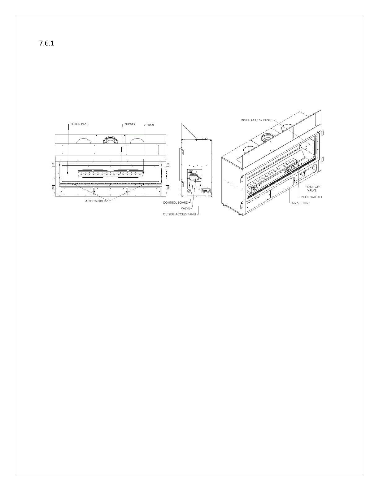 descriptions show how to access the components after the fireplace has been installed. All components are also accessible from