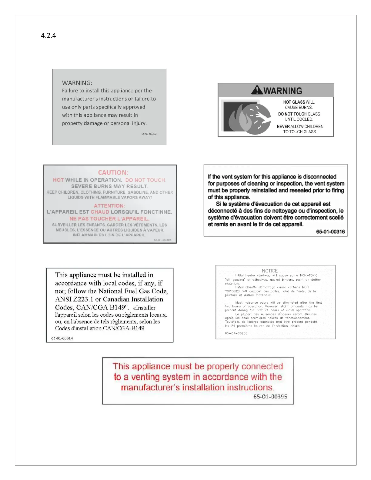 A few warnings or caution labels are attached to this appliance body as required per code to inform you of important facts. You