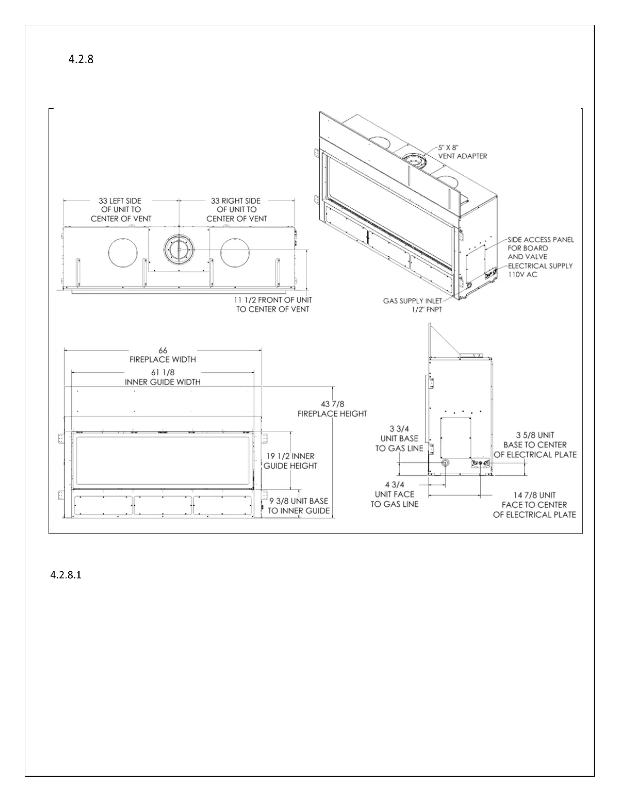 See Figure 4-14 FIREPLACE DIMENSIONS AND FEATURES below. Identify the features included with this Fireplace and their
