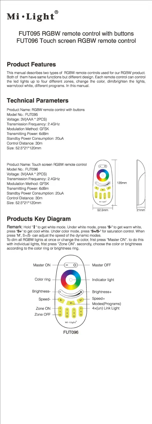 This manual describes two types of RGBW remote controls used for our RGBW product.