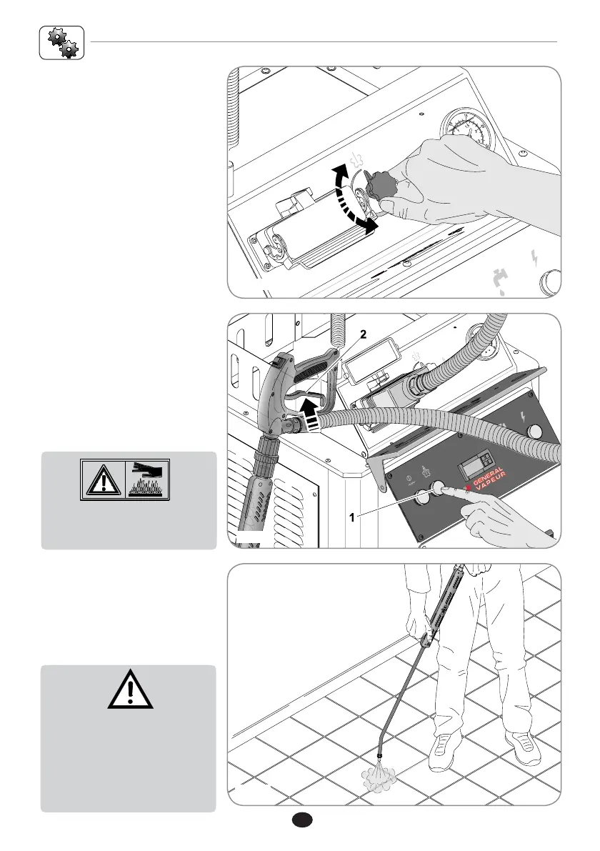 Den Dampfstrahl auf das zu