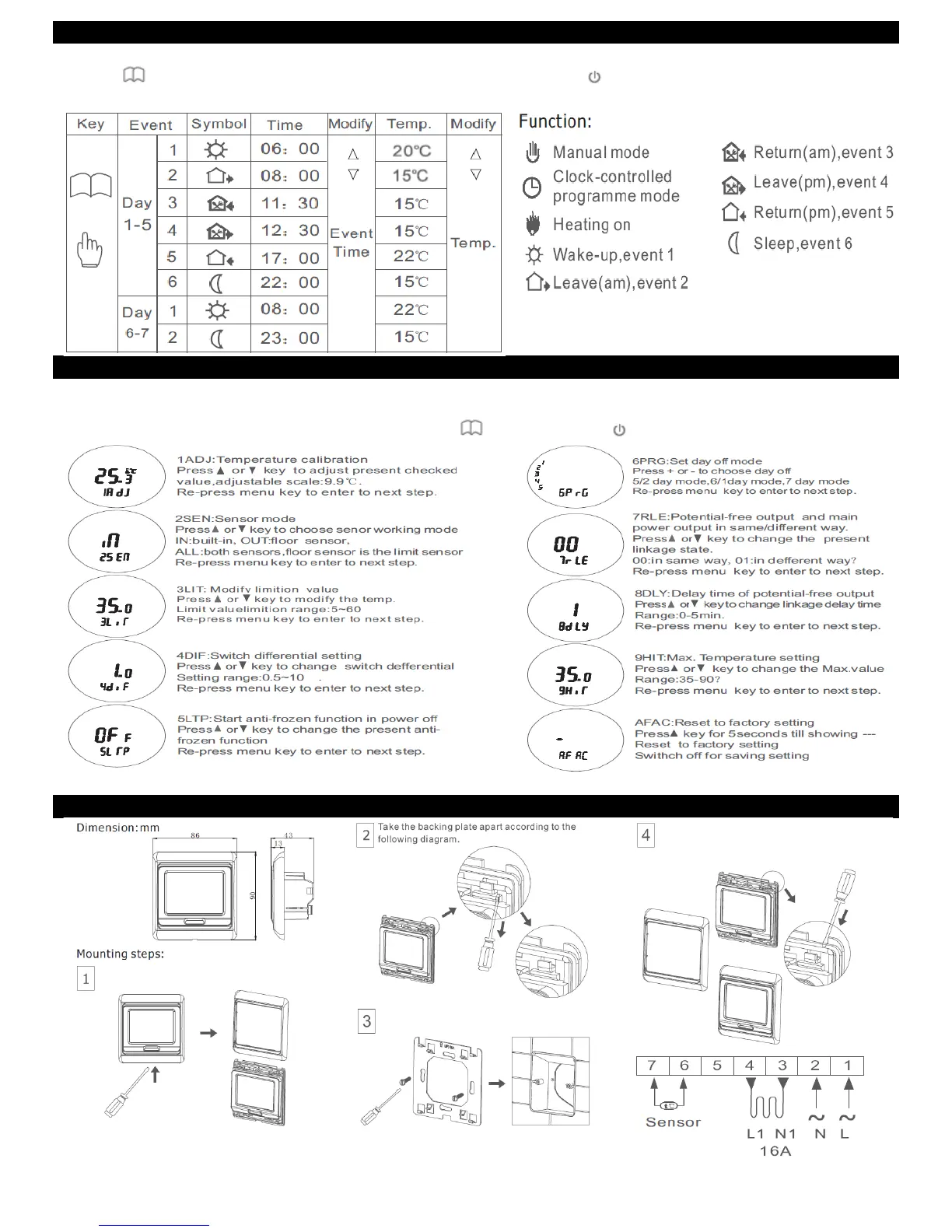 To enter advanced settings turn the thermostat off, then hold the key down and press simultaneously.