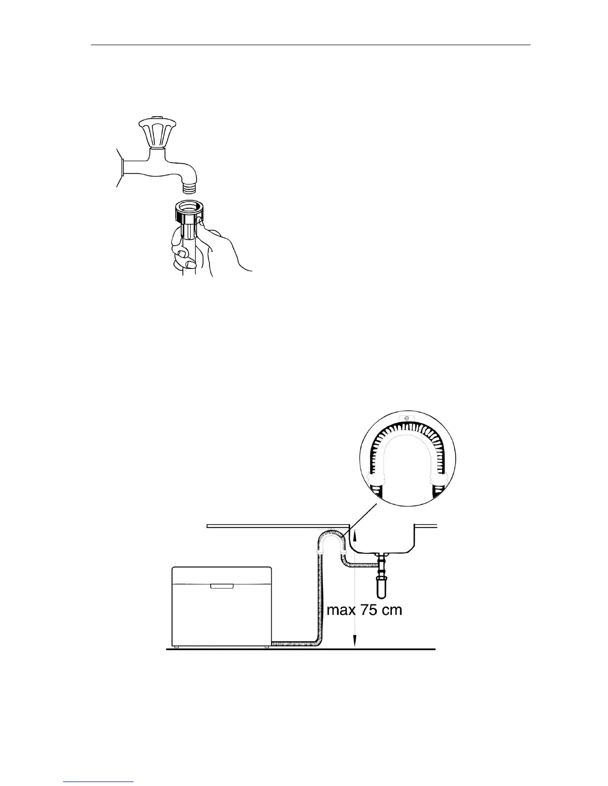 dostarczonej razem z urządzeniem. Wolna końcówka węża musi być zawieszona na wysokości ponad 75
