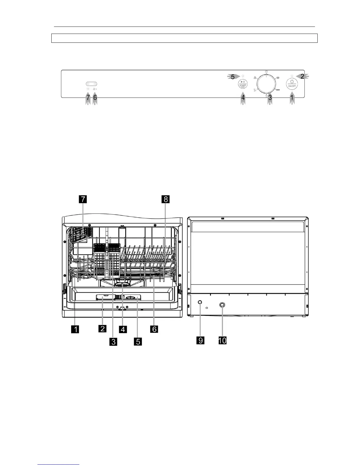 4. Start/Reset: press to start/pause wash programme.