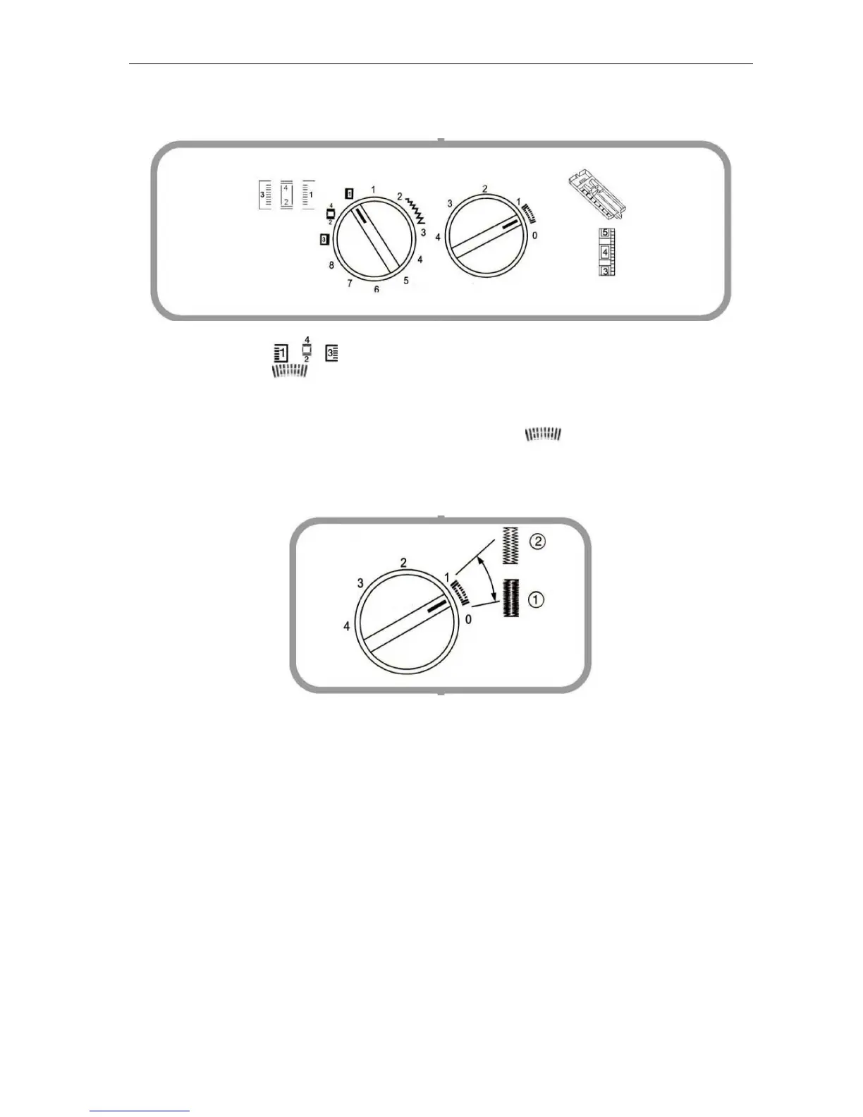 Aby uzyskać rzadszy ścieg, ustaw pokrętło w górnej części zakresu. Rzadszy ścieg najlepszy jest do
