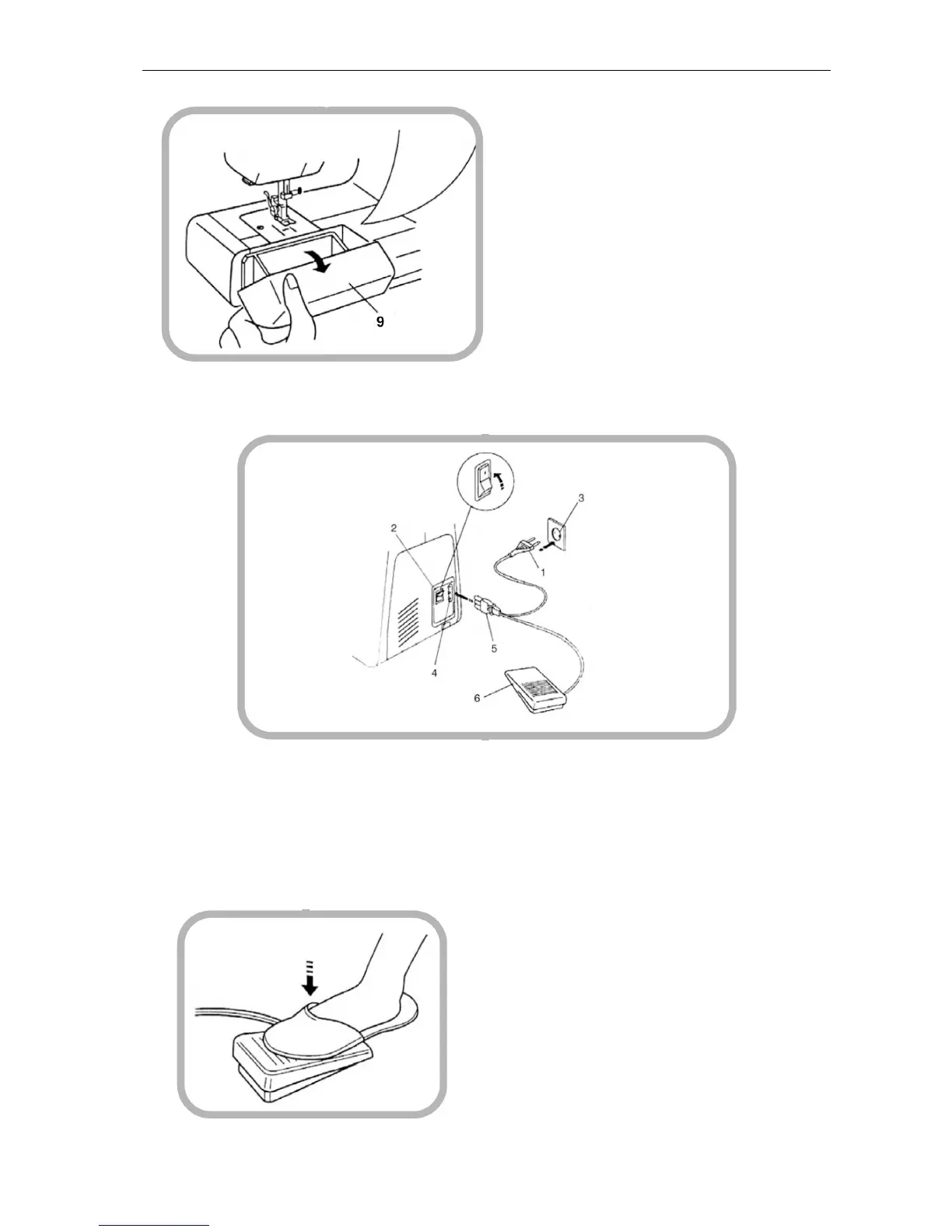 3. Turn the switch (2) to position 1 to turn on the sewing machine’s lighting.