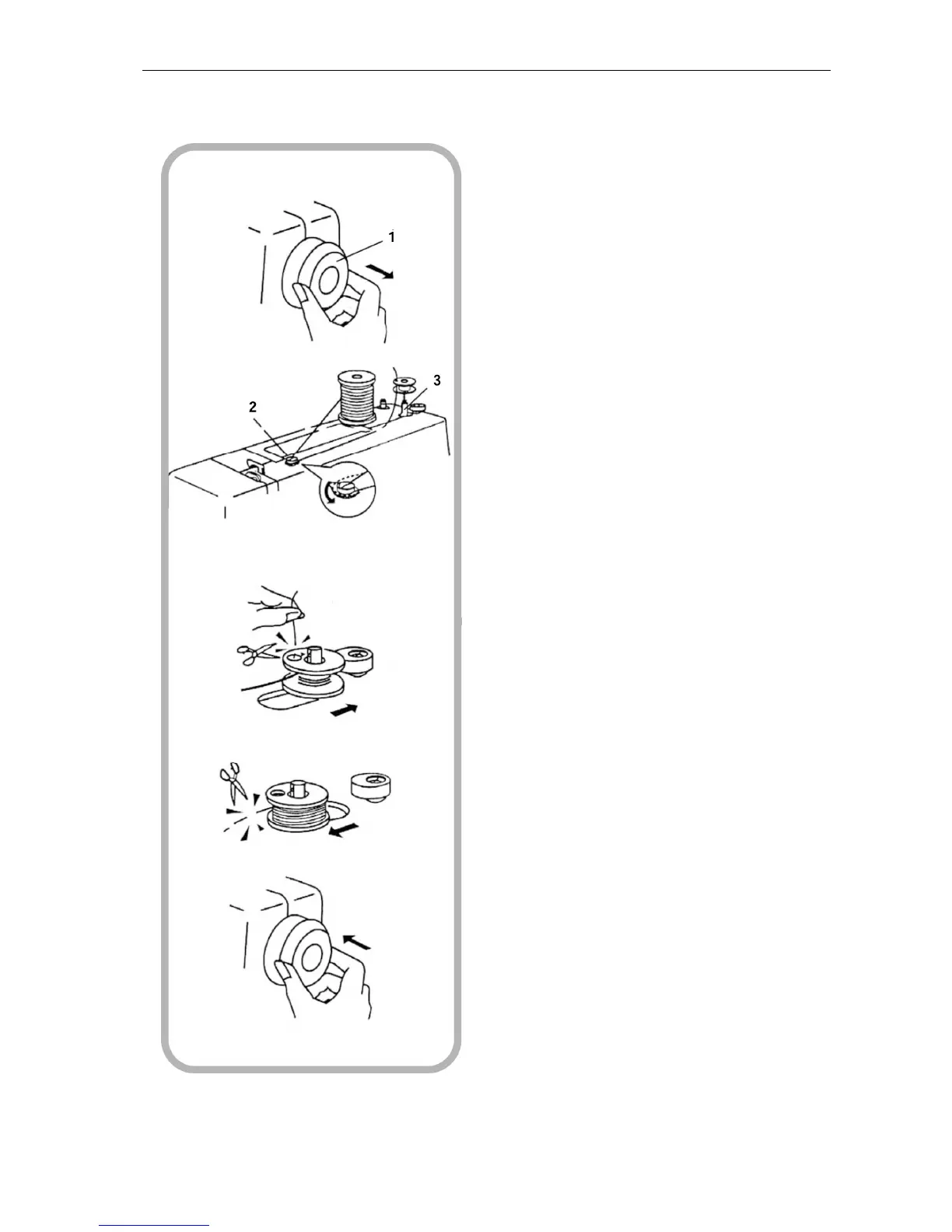 the bobbin from the inside upwards. Place