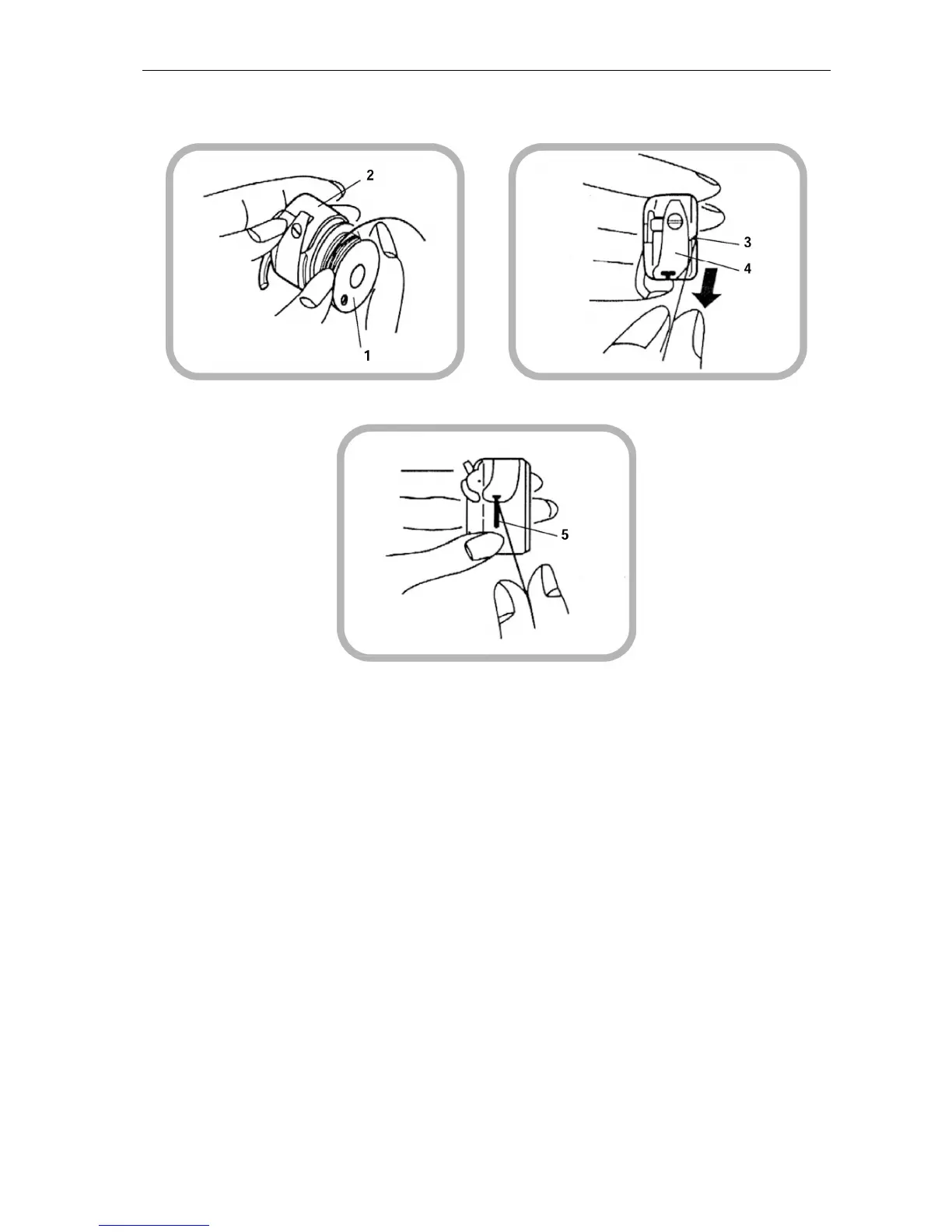 2. Dra tråden genom spåret 3 i spolkapseln.
