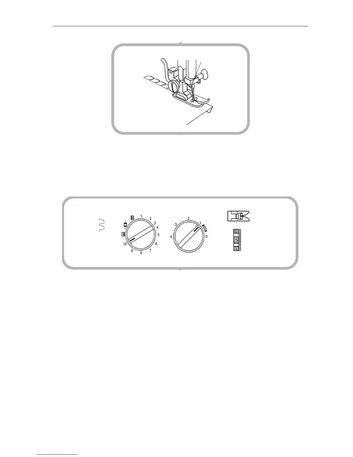 sikksakksømmen går akkurat over stoffkanten. Stoffet får en jevn og flott muslingkant.