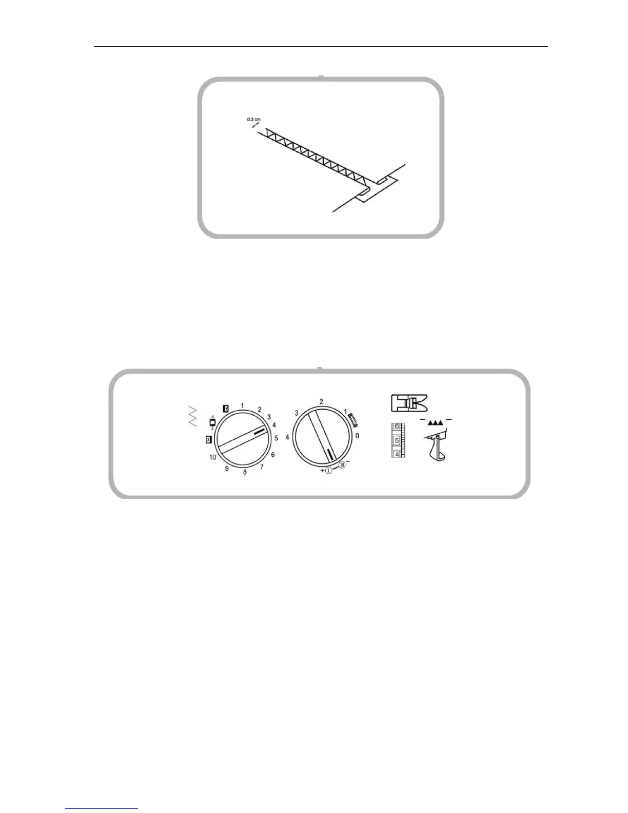 og fest stoffbitene på et mellomlegg i uvevd tekstil ca. 0,3 cm fra hverandre med den innbrettede kanten