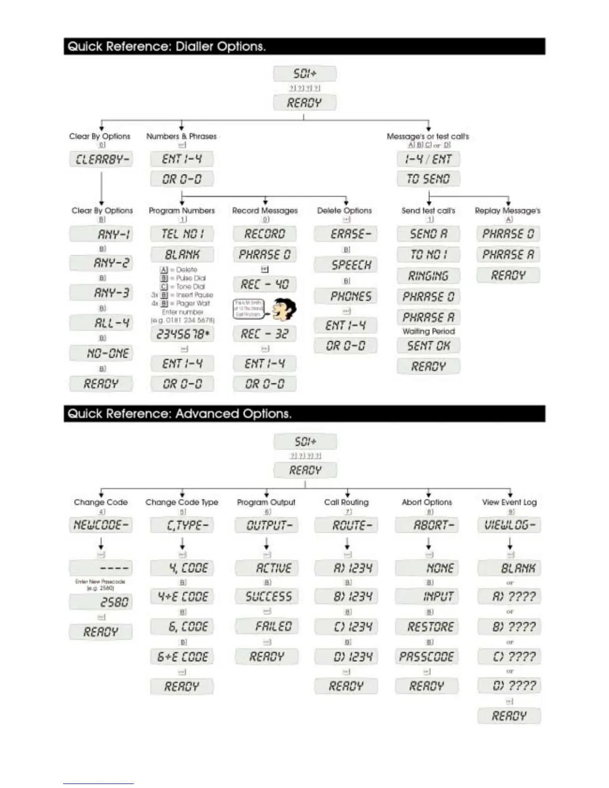 Menvier Security SD1+ - Quick Reference: Dialler Options; Quick Reference: Advanced Options