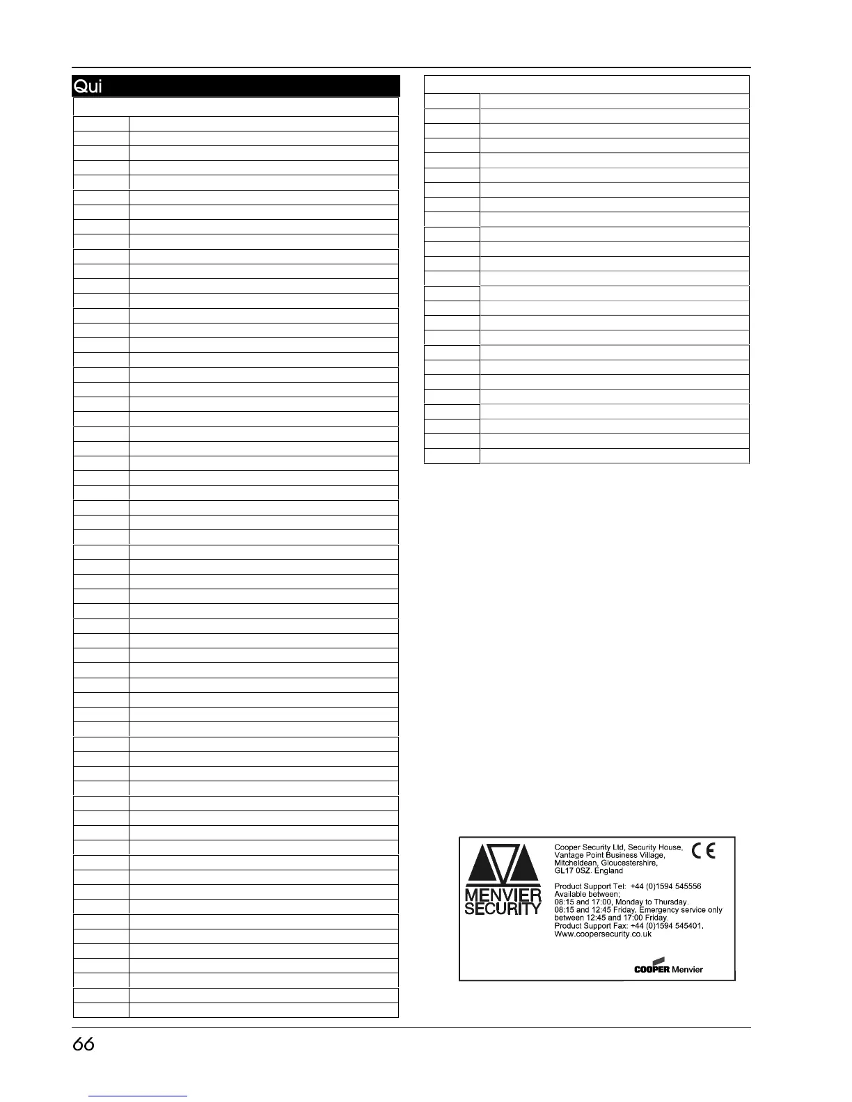 Quick Reference Engineers Menus