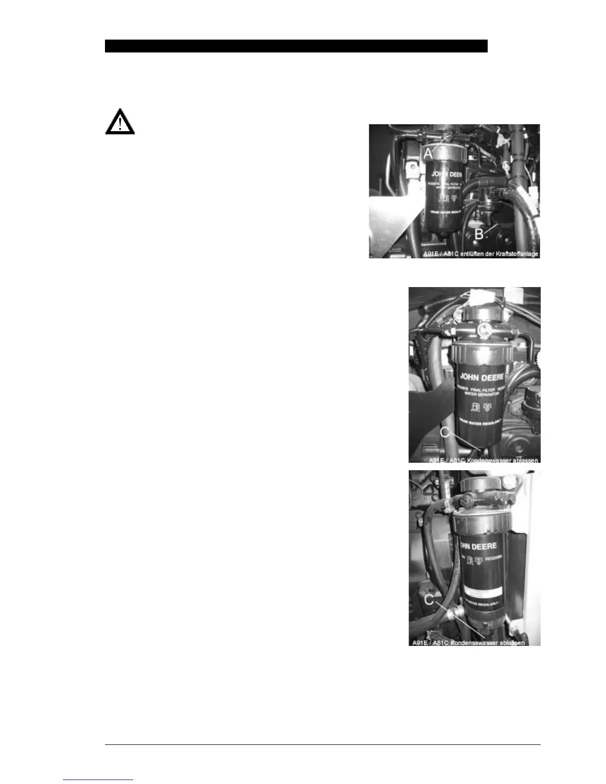 13.7.2 Drain off condensation at the fuel filter
