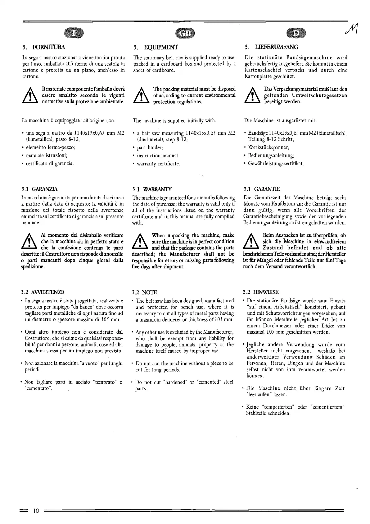 The machine is supplied initiallywìth: