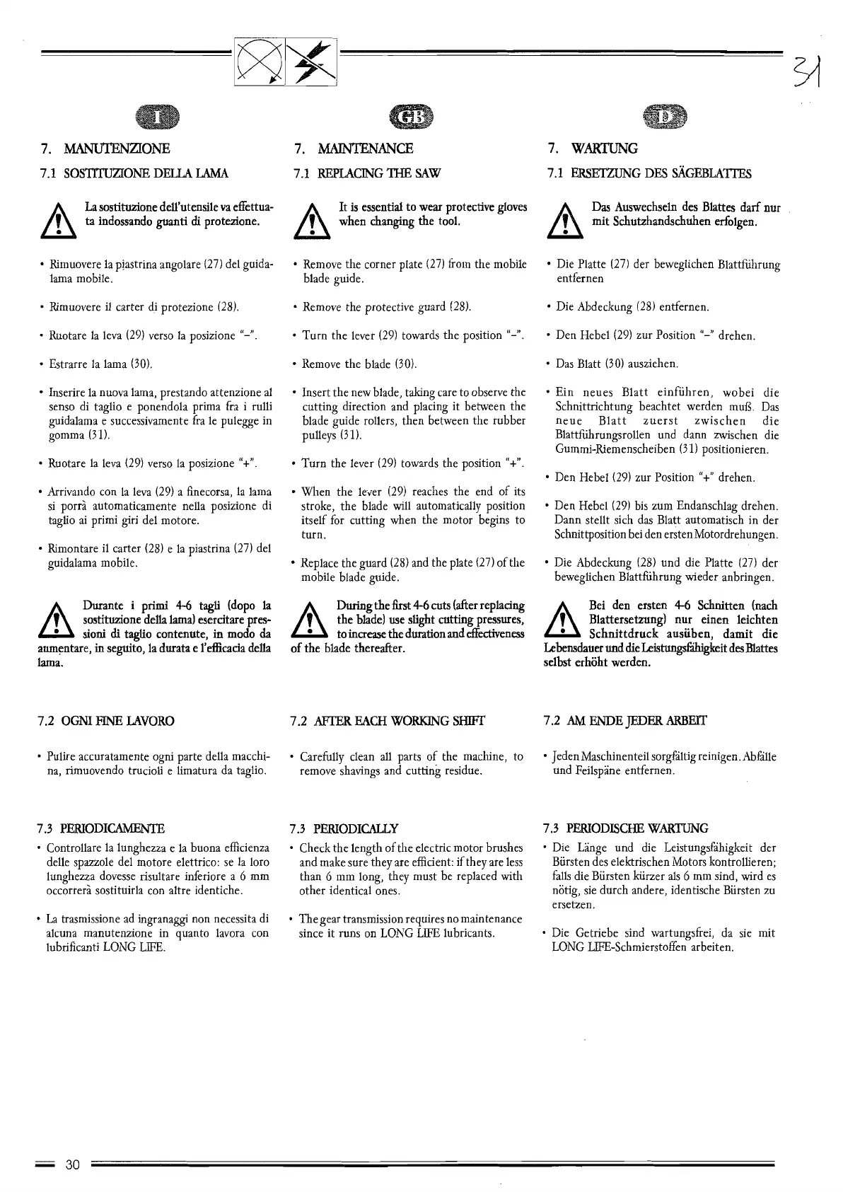 Das Auswechseln des Blattes darf nur