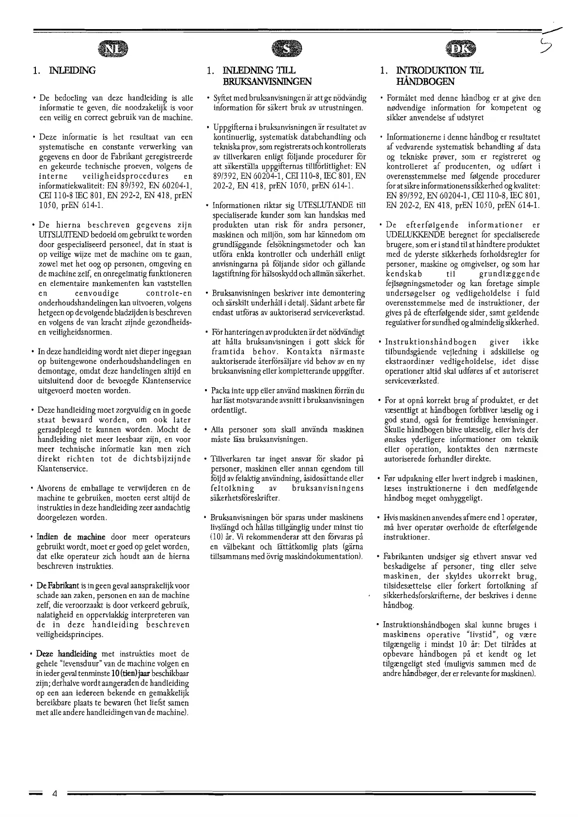 EN 202-2, EN 418, prEt'J 1050, prEN 614-1.