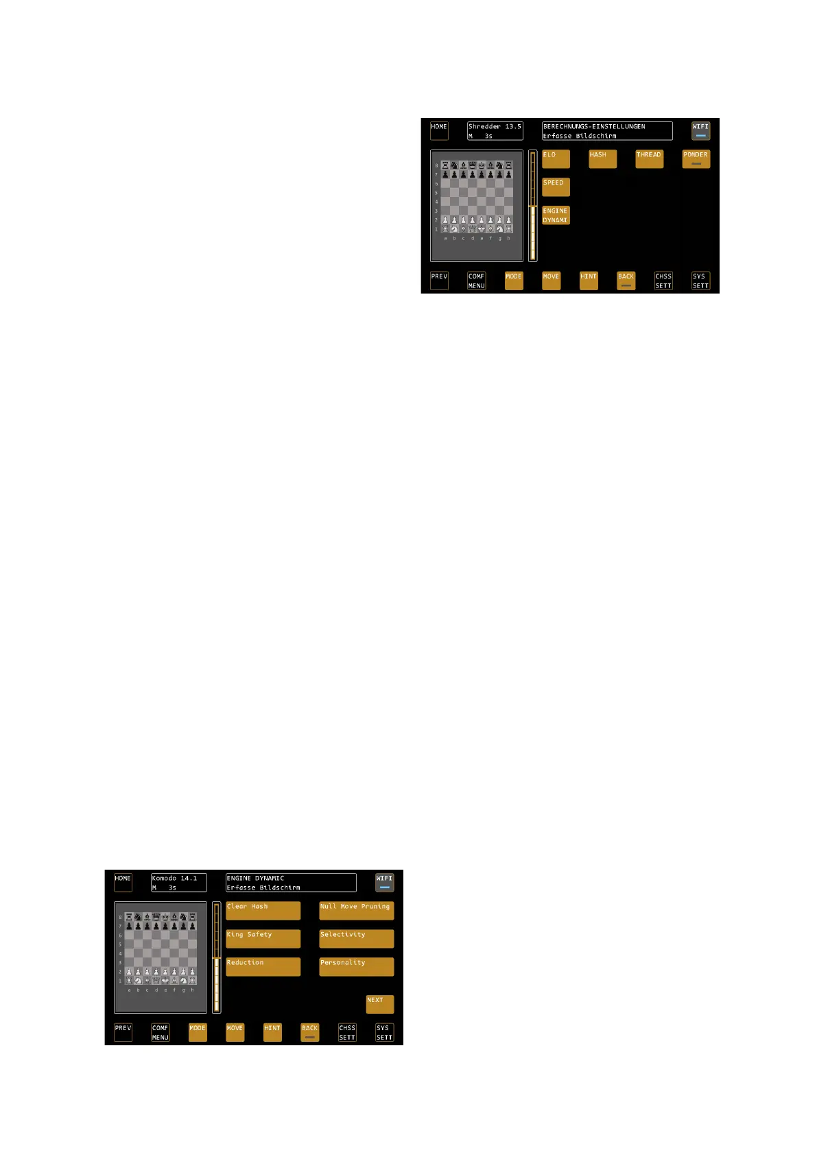 Under ENGINE DYNAMIC you will find all the UCI settings that were not mentioned before, but which have an