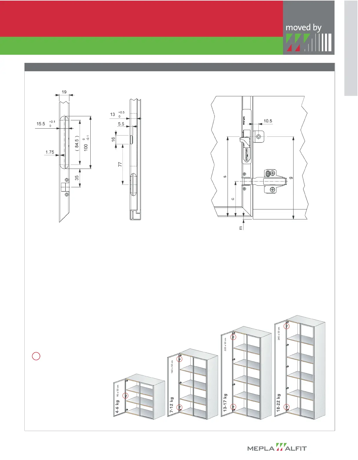 * Position for inset door: 10,5 mm + door thickness + 2 mm