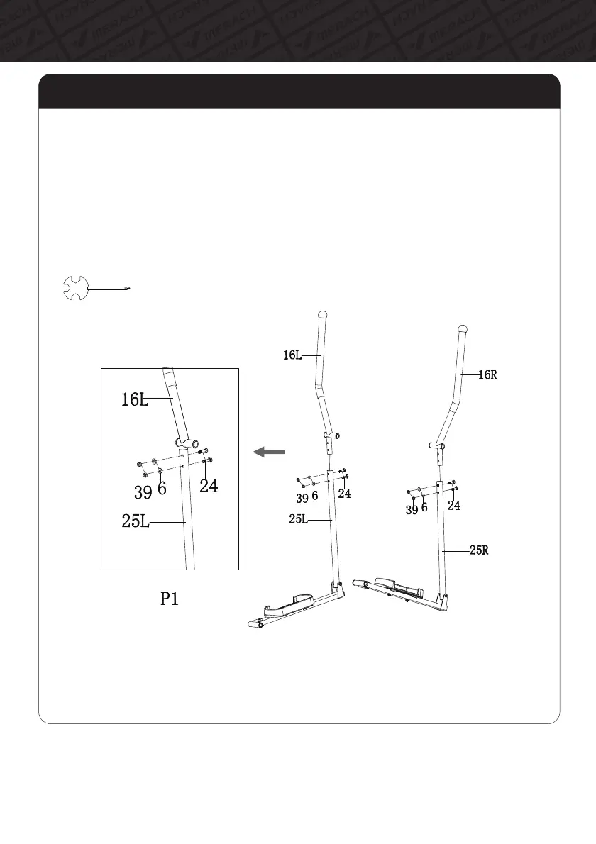 A. Insert the Left Handrail(#16L) into the Left Rocker(#25L), align the hole of bolts.
