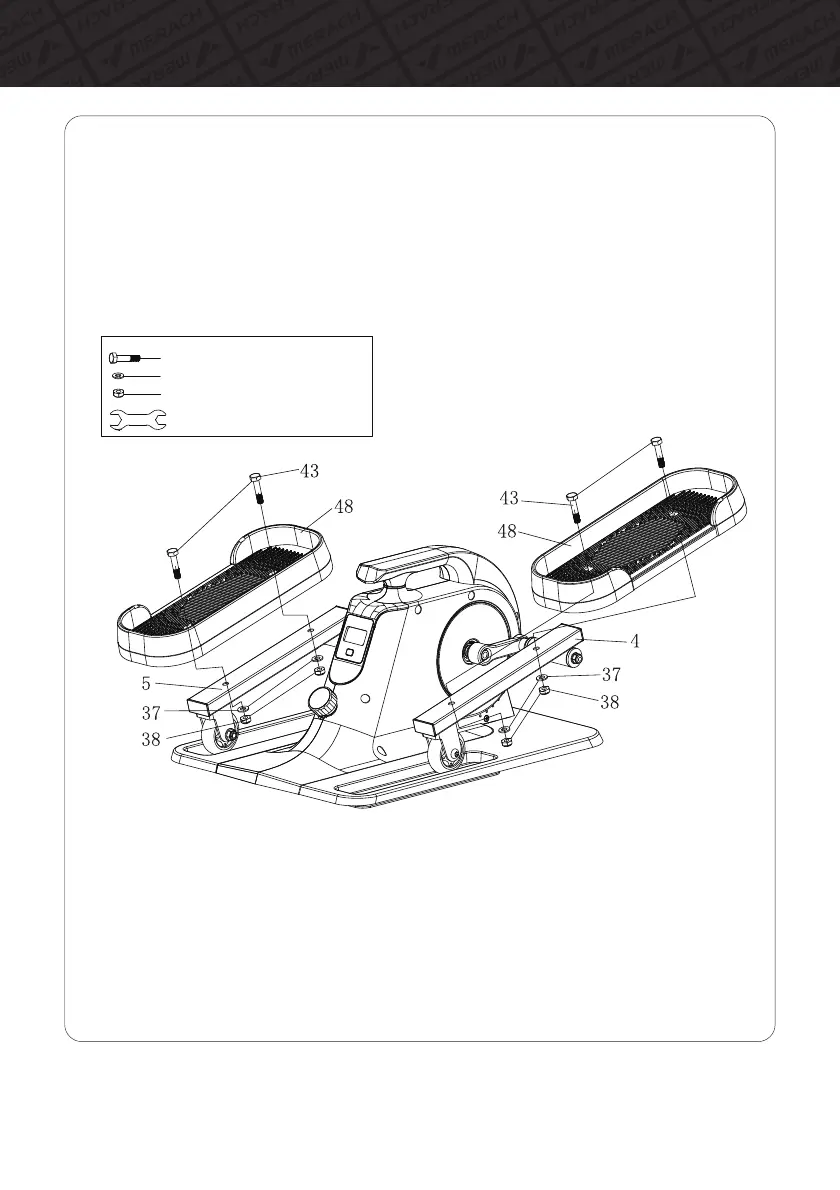 A. Install the Right Foot Pedal(#48) onto the Right Foot Tube Assembly(#4) with two Hexagon