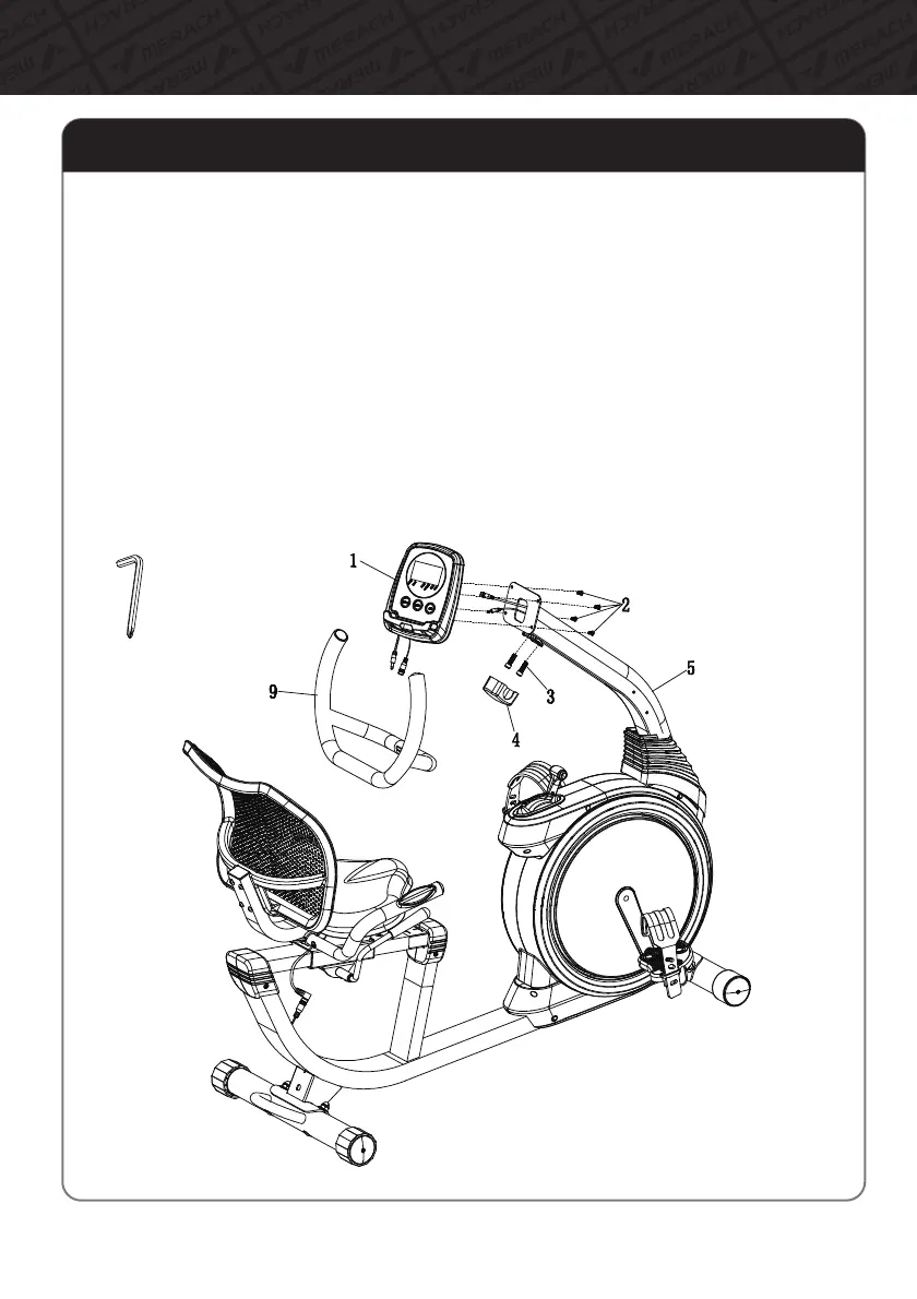 A.AttachtheHandlebar(#9)totheSupportTube(#5)withBolts(#3).Clipthe