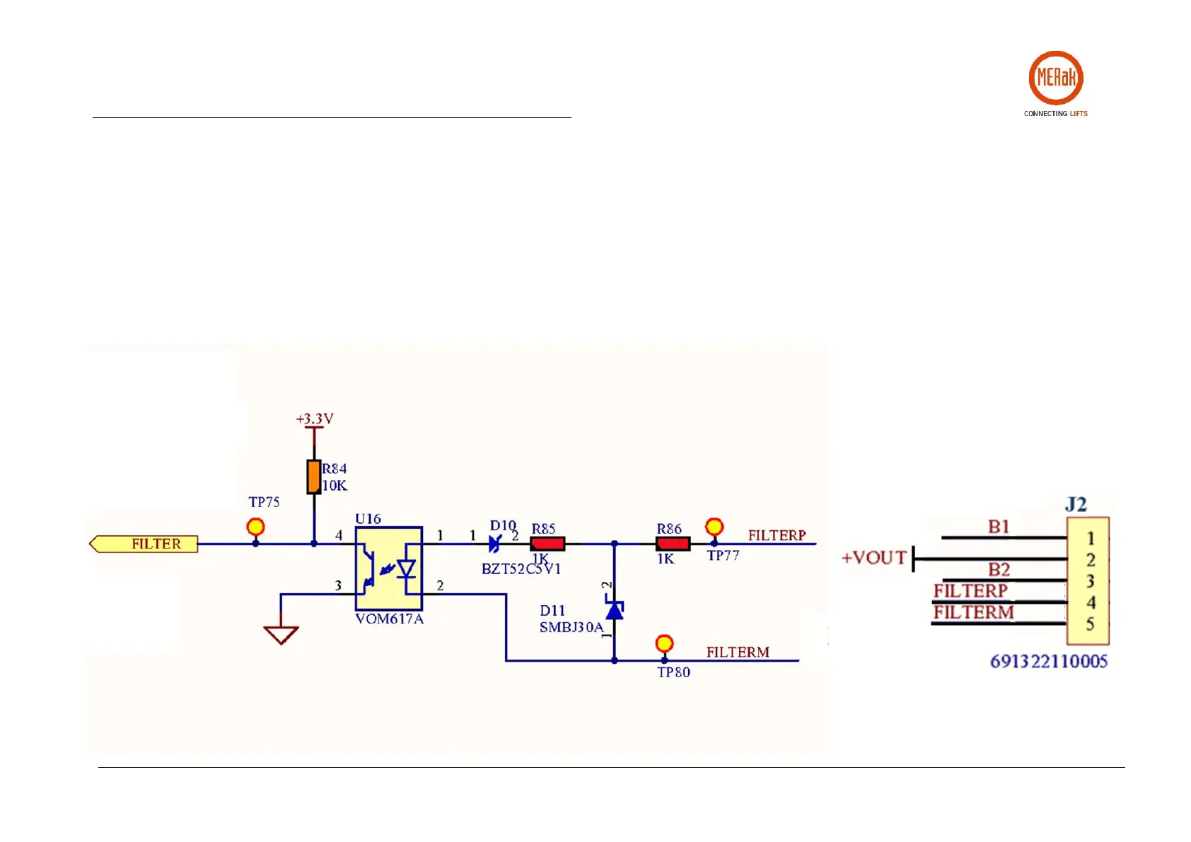 We present below the electronic scheme associated with the alarm filtering input, which is connected to terminals 4 and 5 of connector J2. As you can