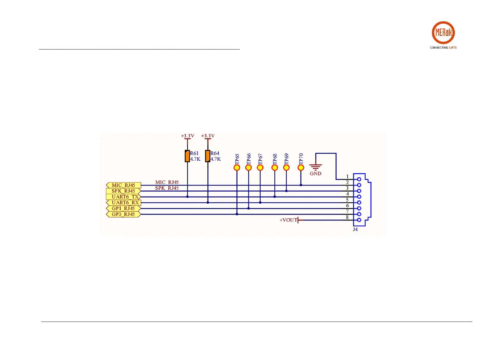 The J4 connector is RJ45 type and incorporates audio signals (speaker and microphone), as well as other control and power signals. Auxiliary roof and