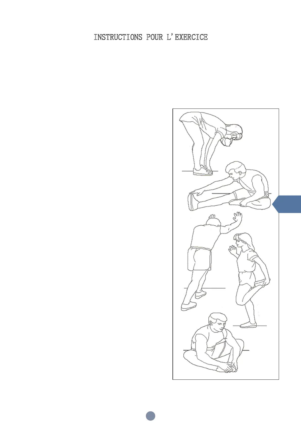 quelques exercices d'étirement comme indiqué ci-dessous. Chaque étirement doit être maintenu pendant