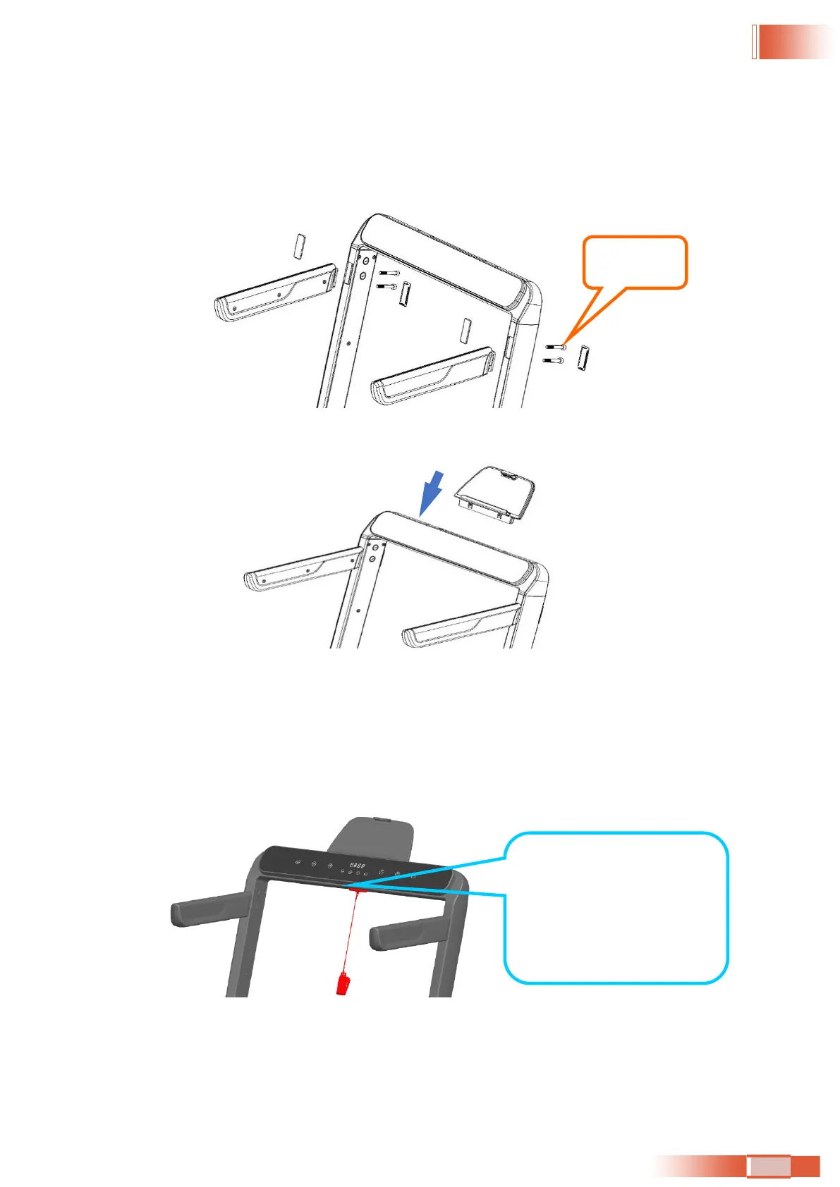 2. Remove the 4 covers from the column and insert the left and right handlebars into the corresponding
