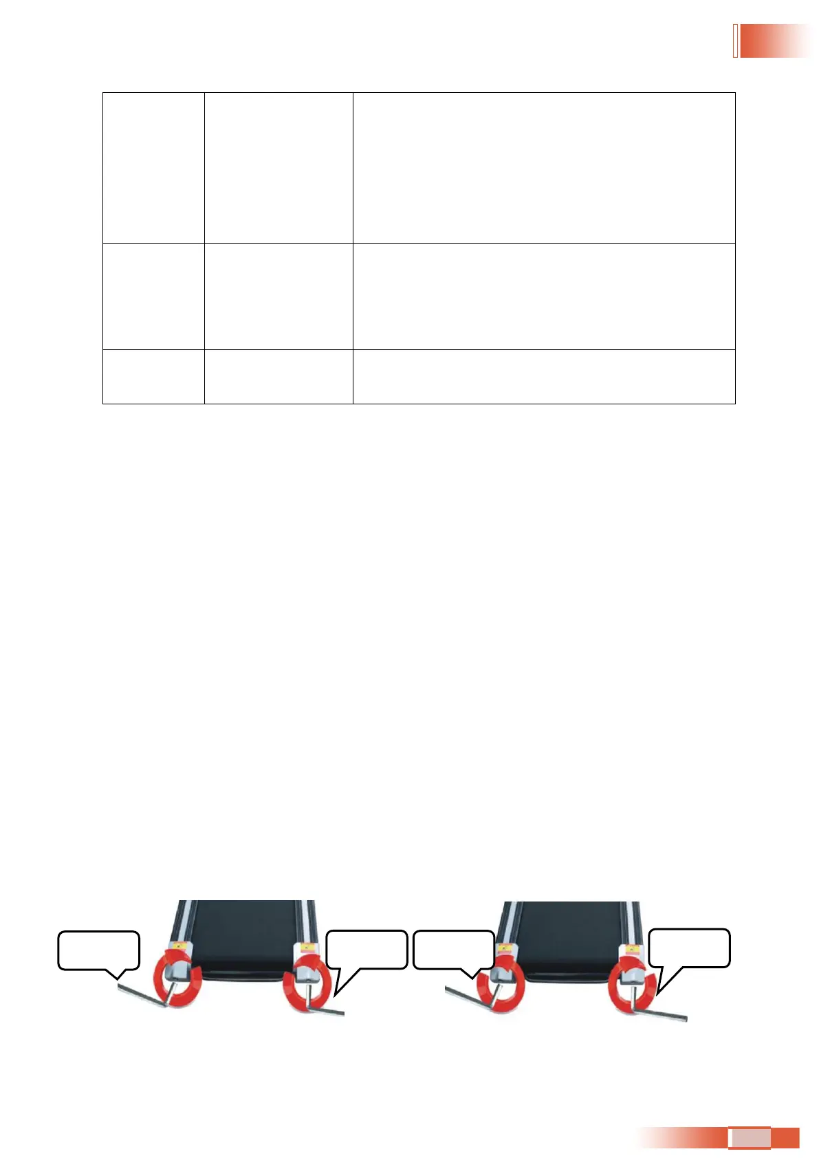 If the running belt is closer to the right: rotate the right adjusting bolt with 1/2 turn clockwise, then