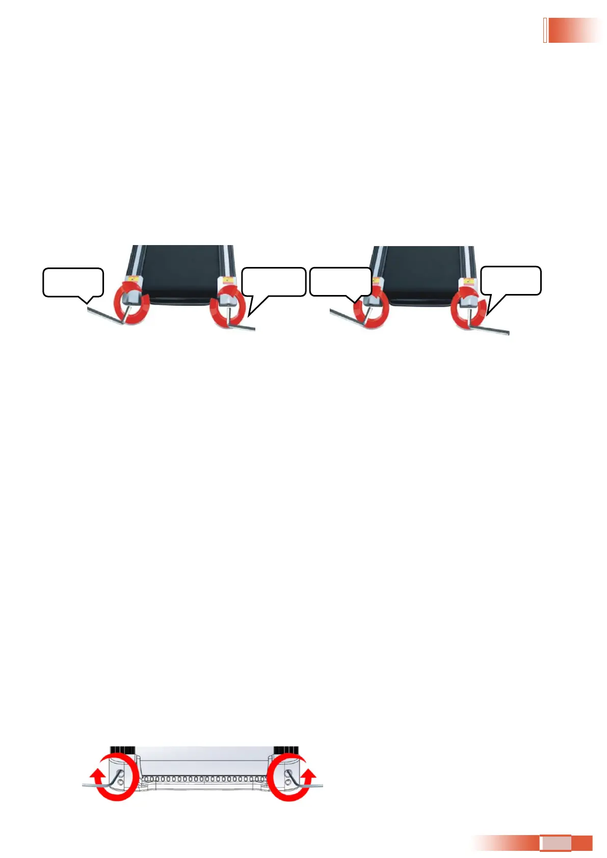 Si la bande de course est plus proche de la droite : tournez le boulon de réglage droit d'1/2 tour dans