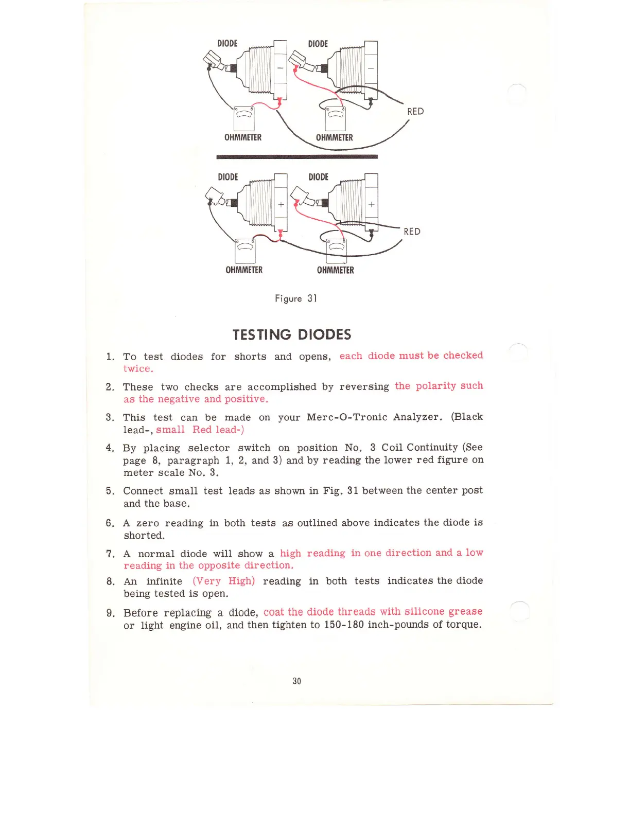Merc-O-Tronics 98 - TESTING DIODES; Diode Testing Procedure