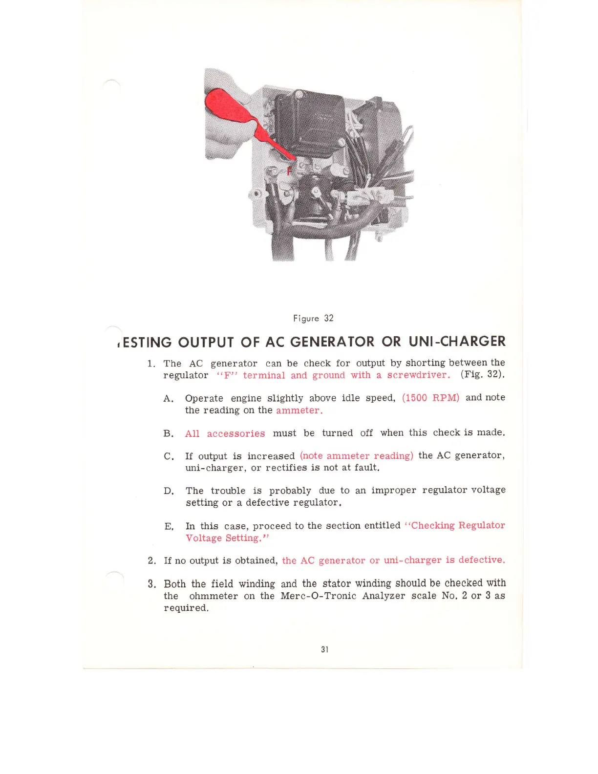 Merc-O-Tronics 98 - TESTING AC GENERATOR OUTPUT; AC Generator Output Test Procedure
