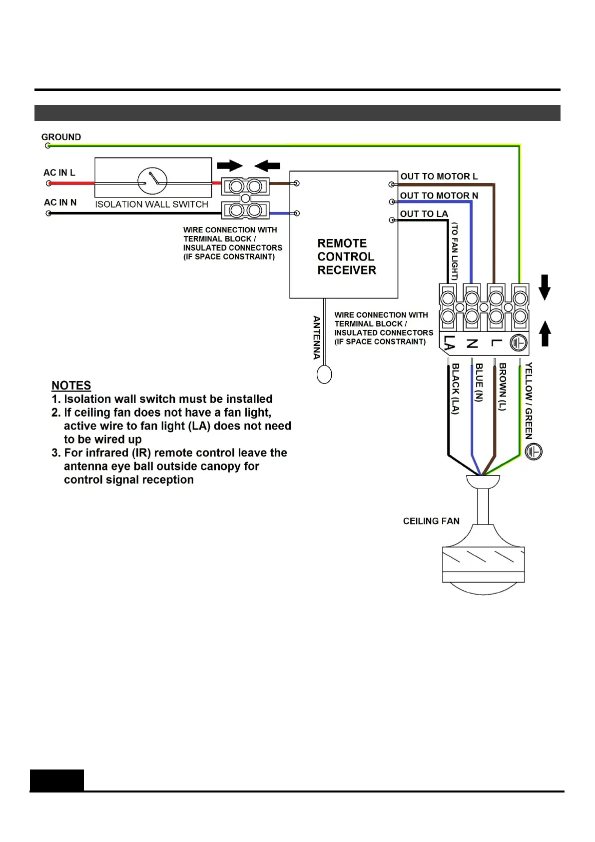 WIRING DIAGRAM FOR FAN CONTROLLED WITH REMOTE CONTROLLER (OPTIONAL)