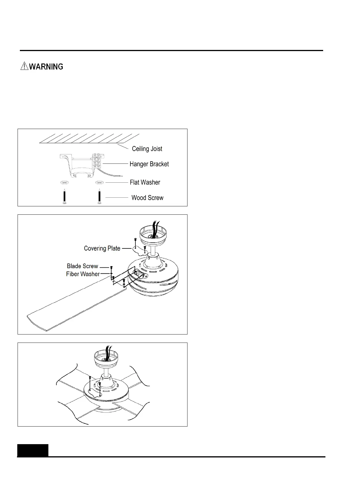1. Fan, hanger bracket and light kit must be