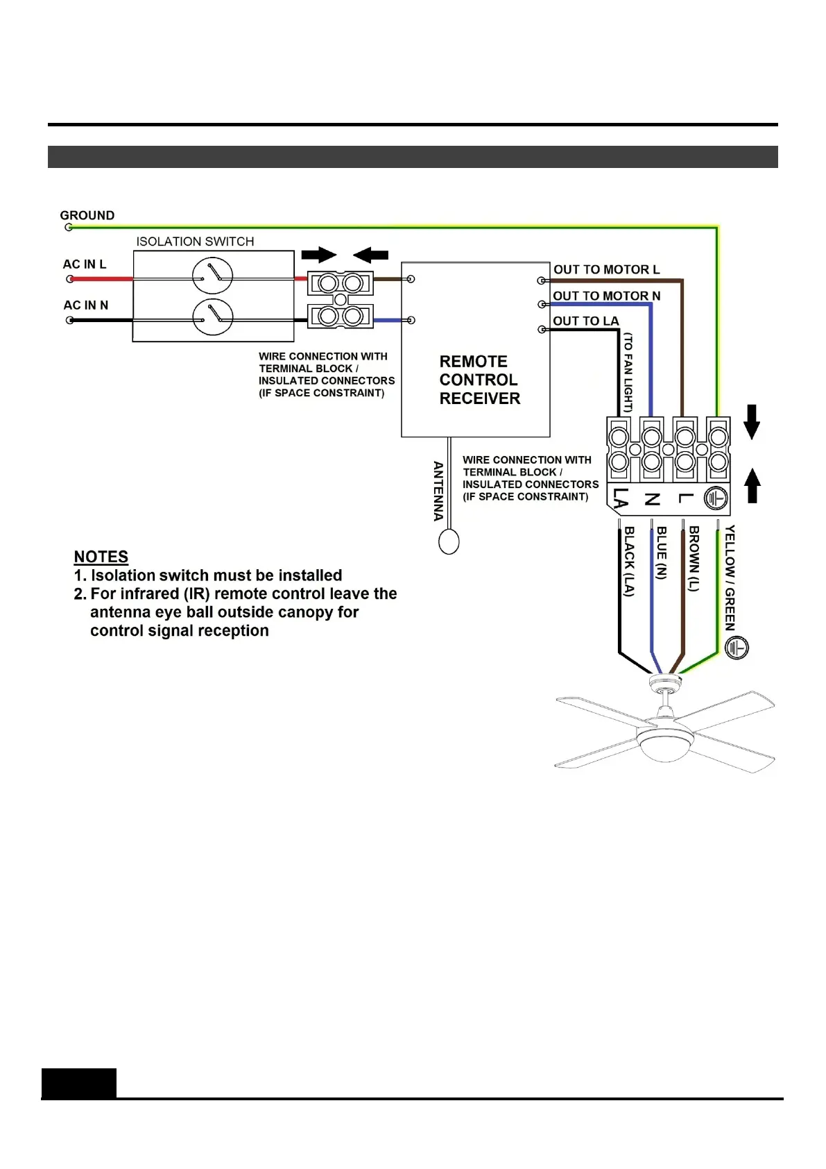 WIRING DIAGRAM FOR FAN CONTROLLED WITH REMOTE CONTROLLER (OPTIONAL)