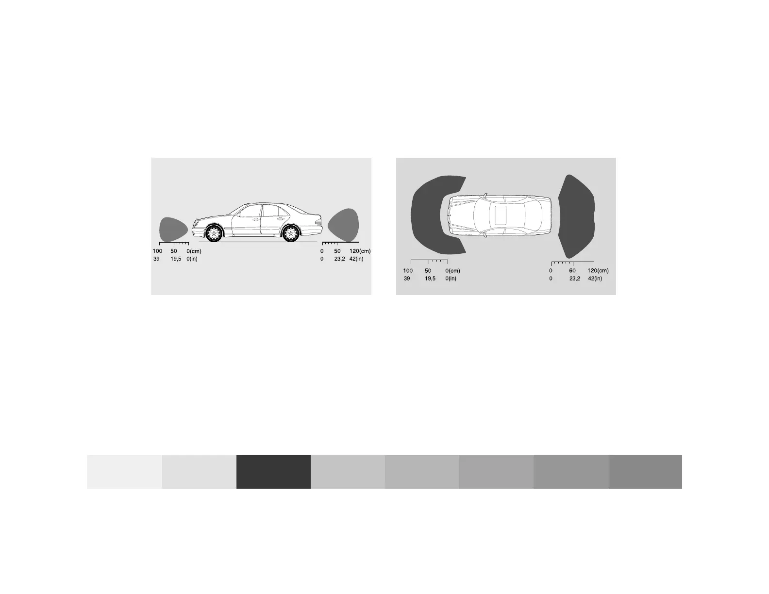 Front center and rear approx. 8 in (20 cm)
