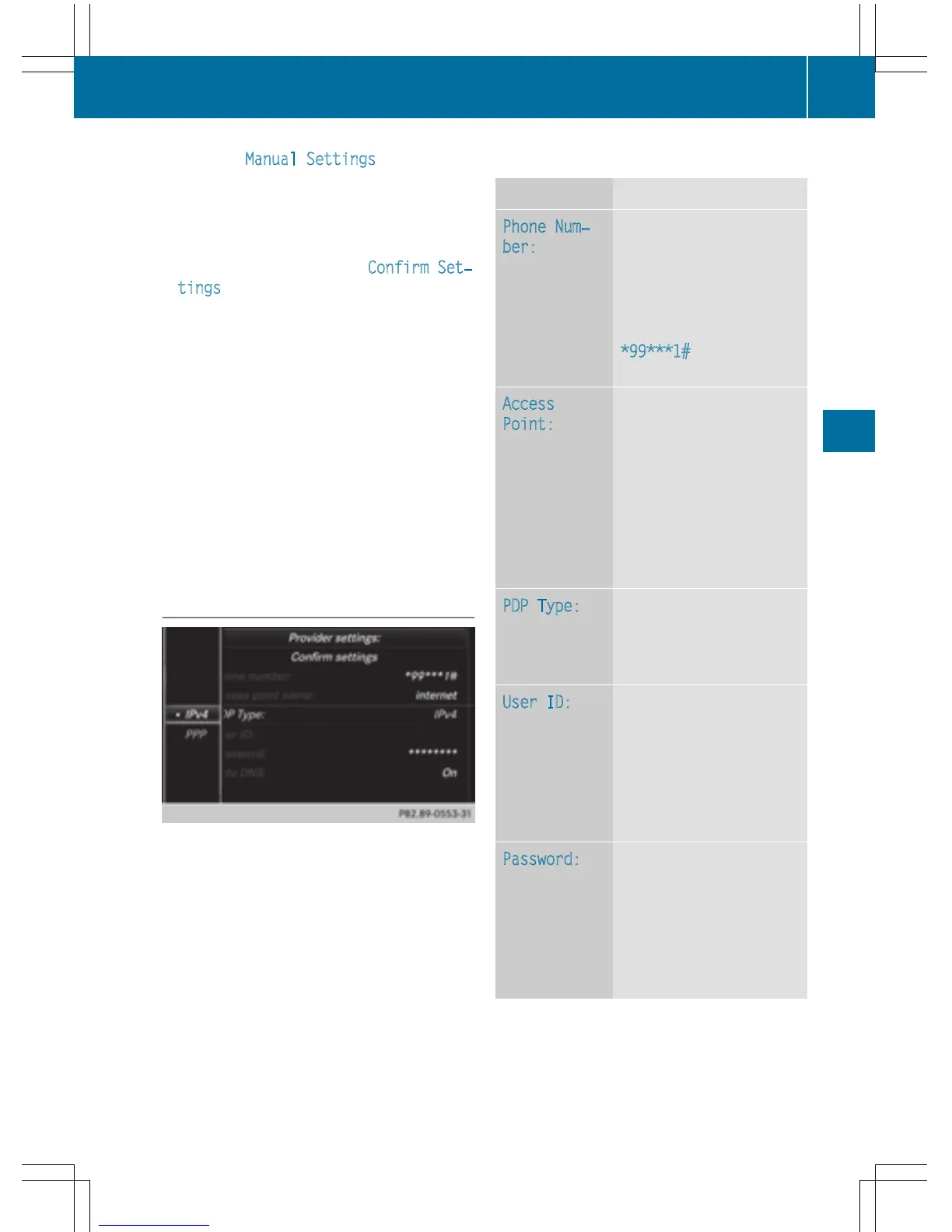 Set access data (Y page 149).