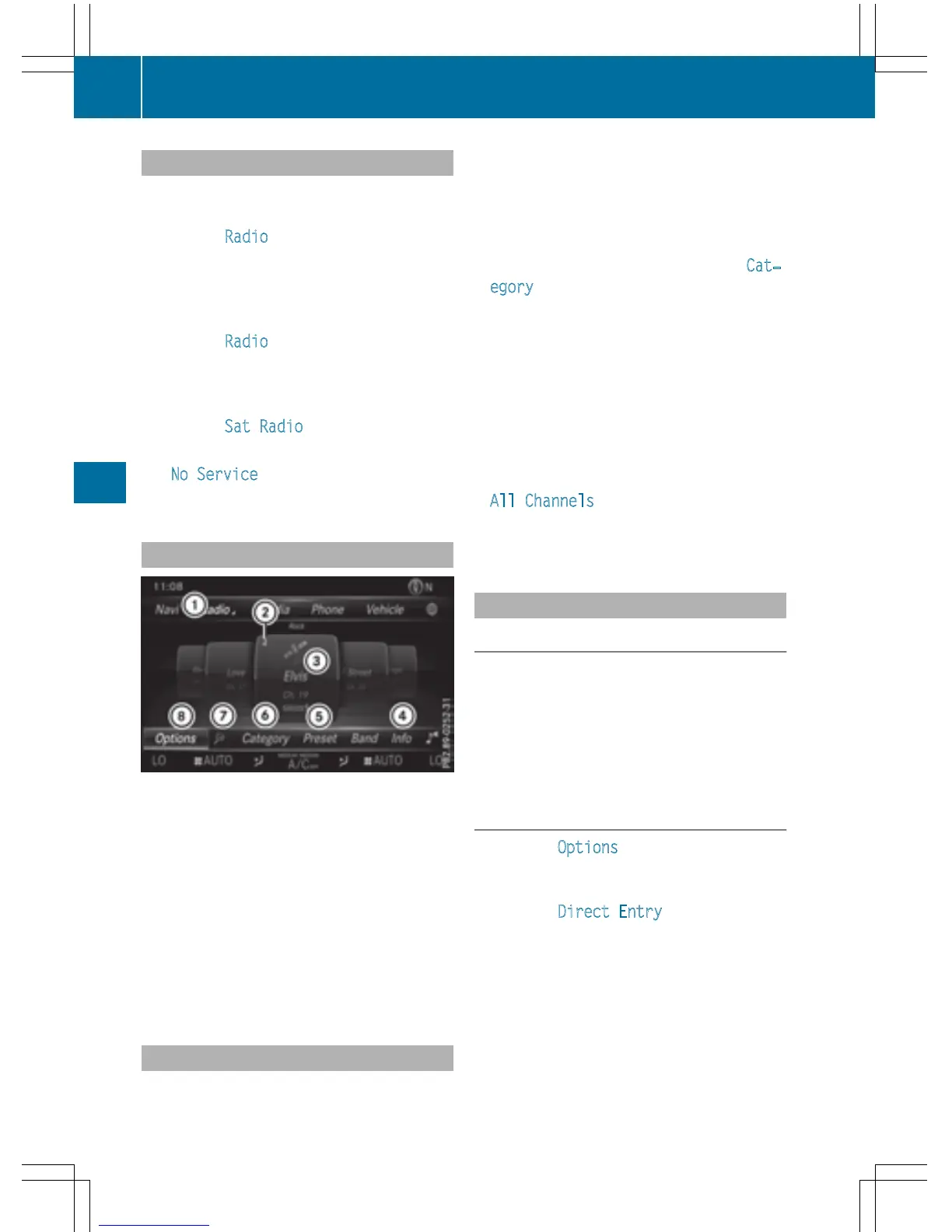 The satellite radio menu appears.