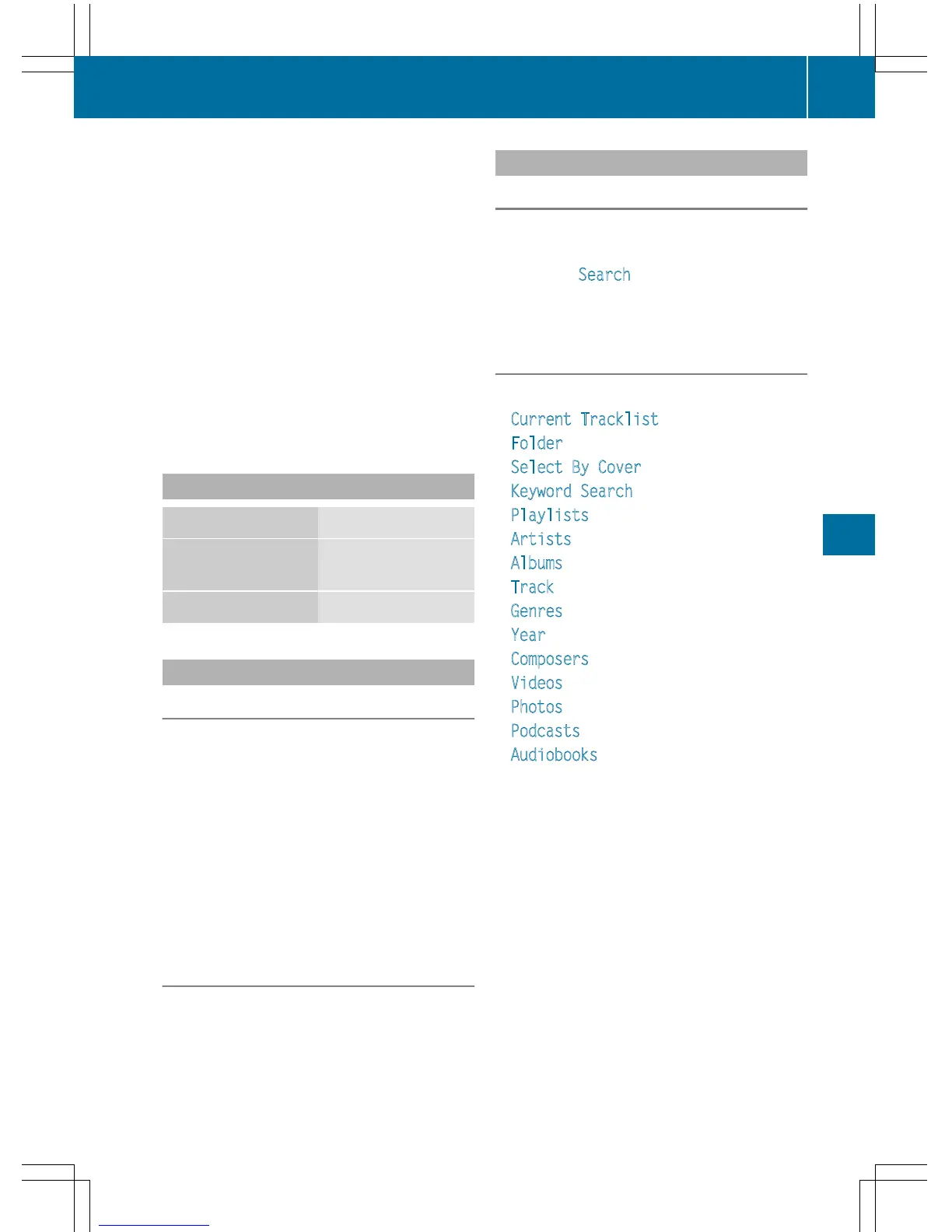 To select Search: turn and press the con-