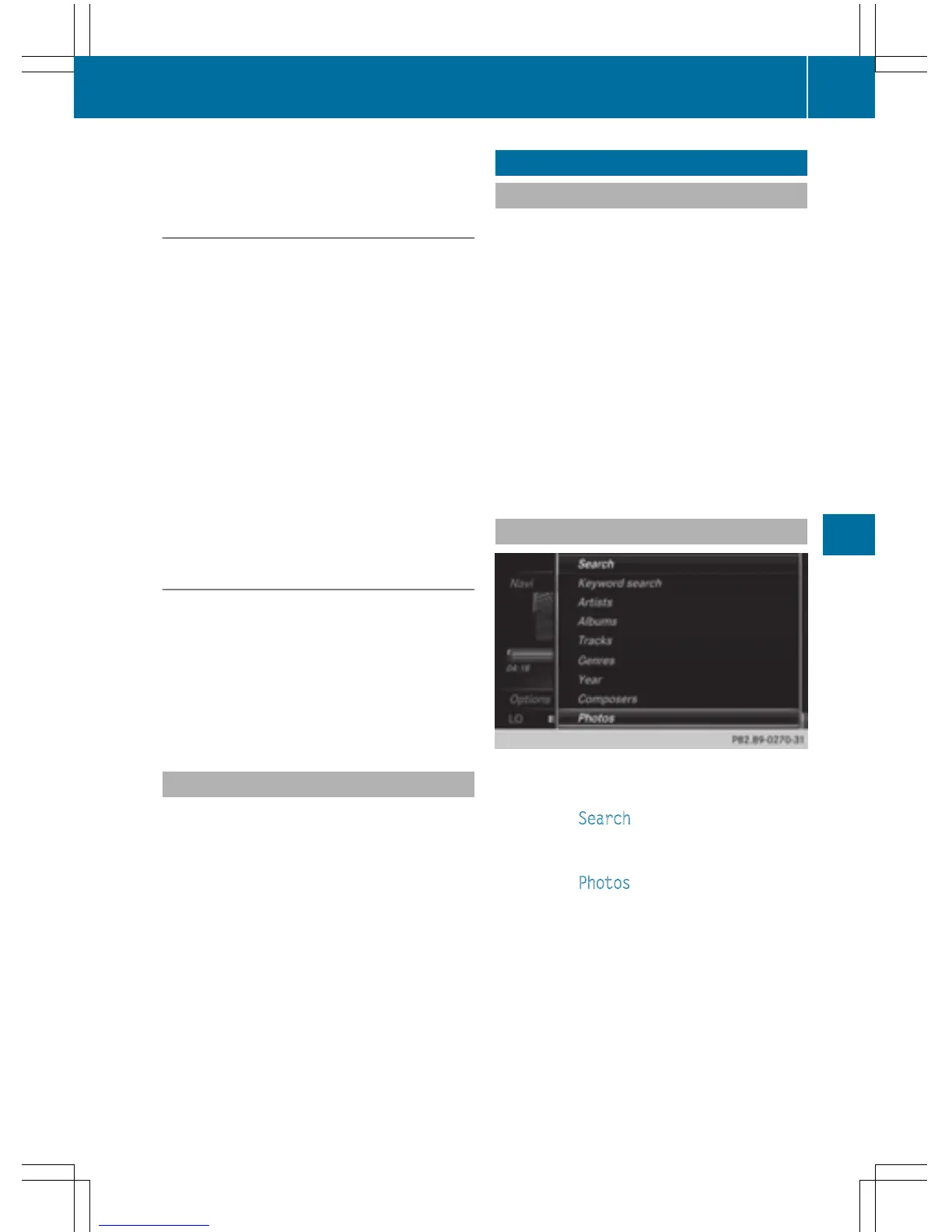 To select Photos: turn and press the con-