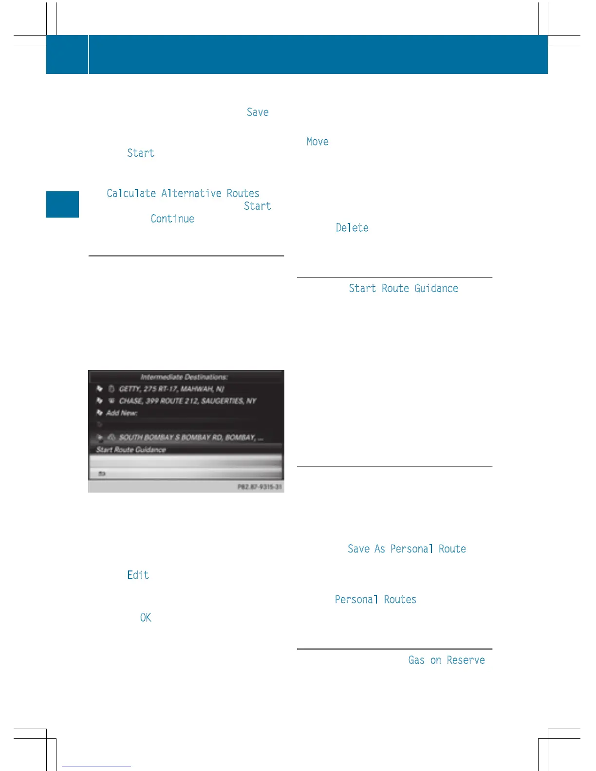 tions menu. Once the route has been recal-