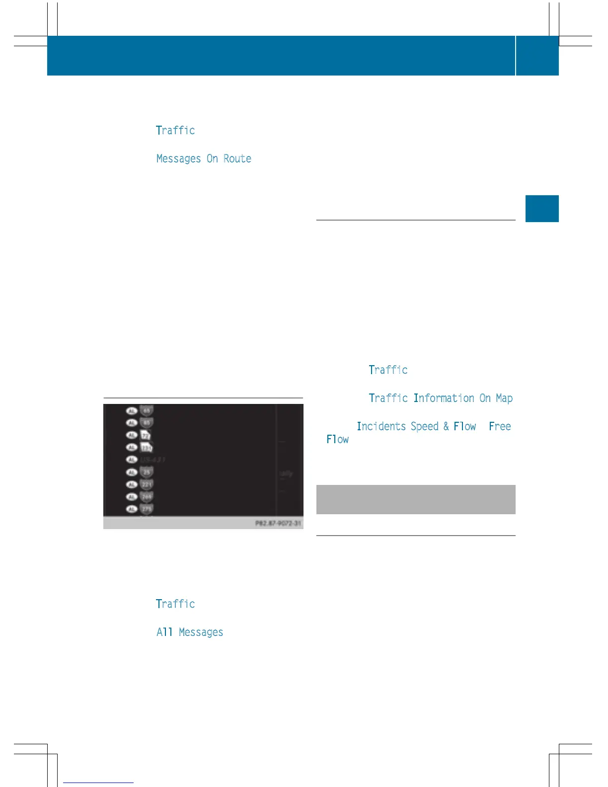 To select Traffic: turn and press the con-