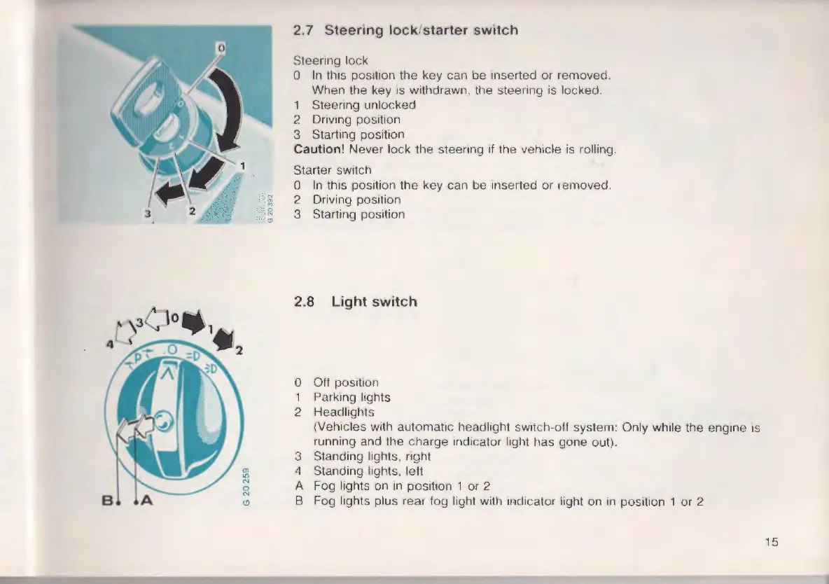 2.7 Steering lock/starter switch