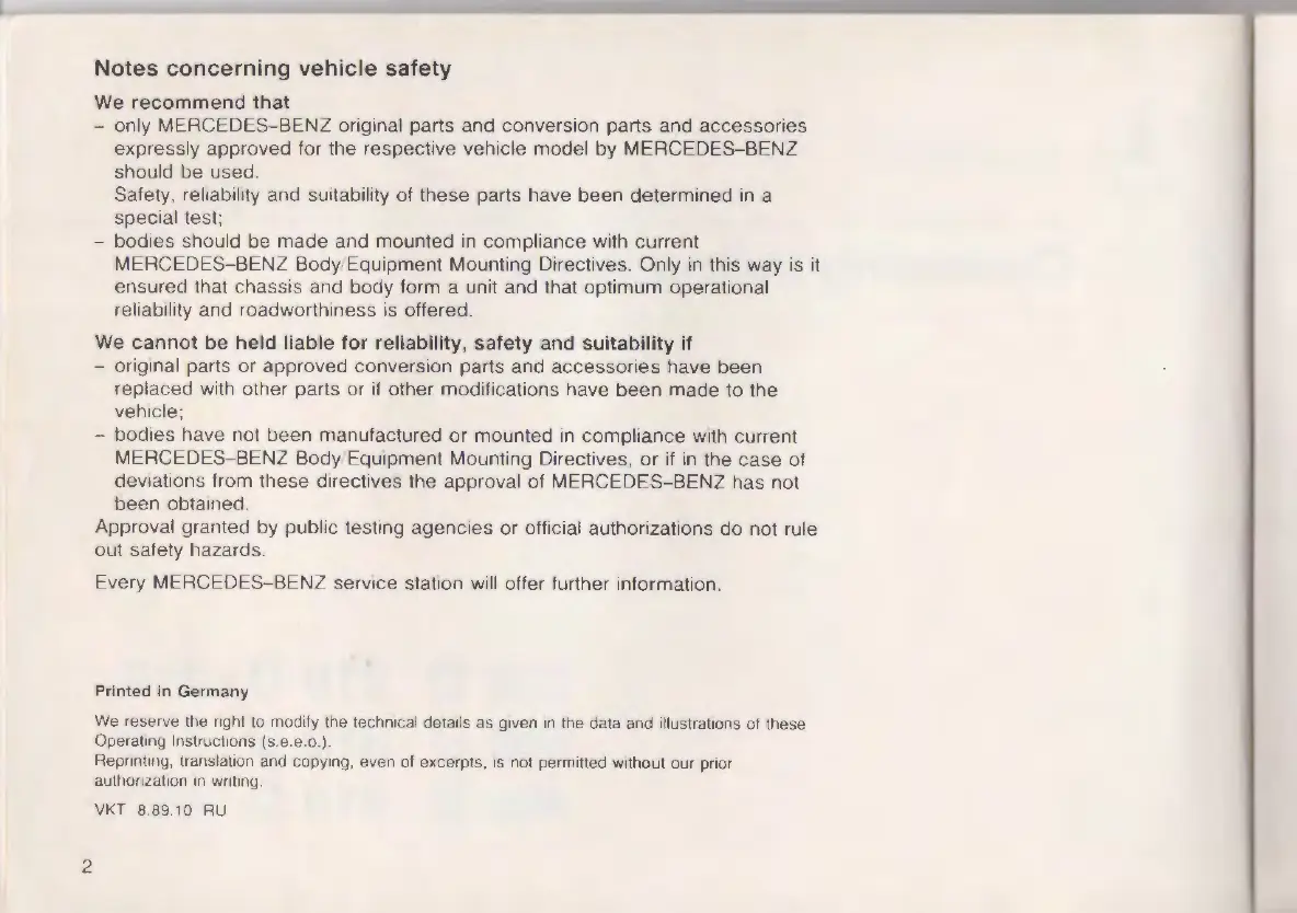 MERCEDES-BE NZ Body 'Equipment Mounting Directives, or if in the case of