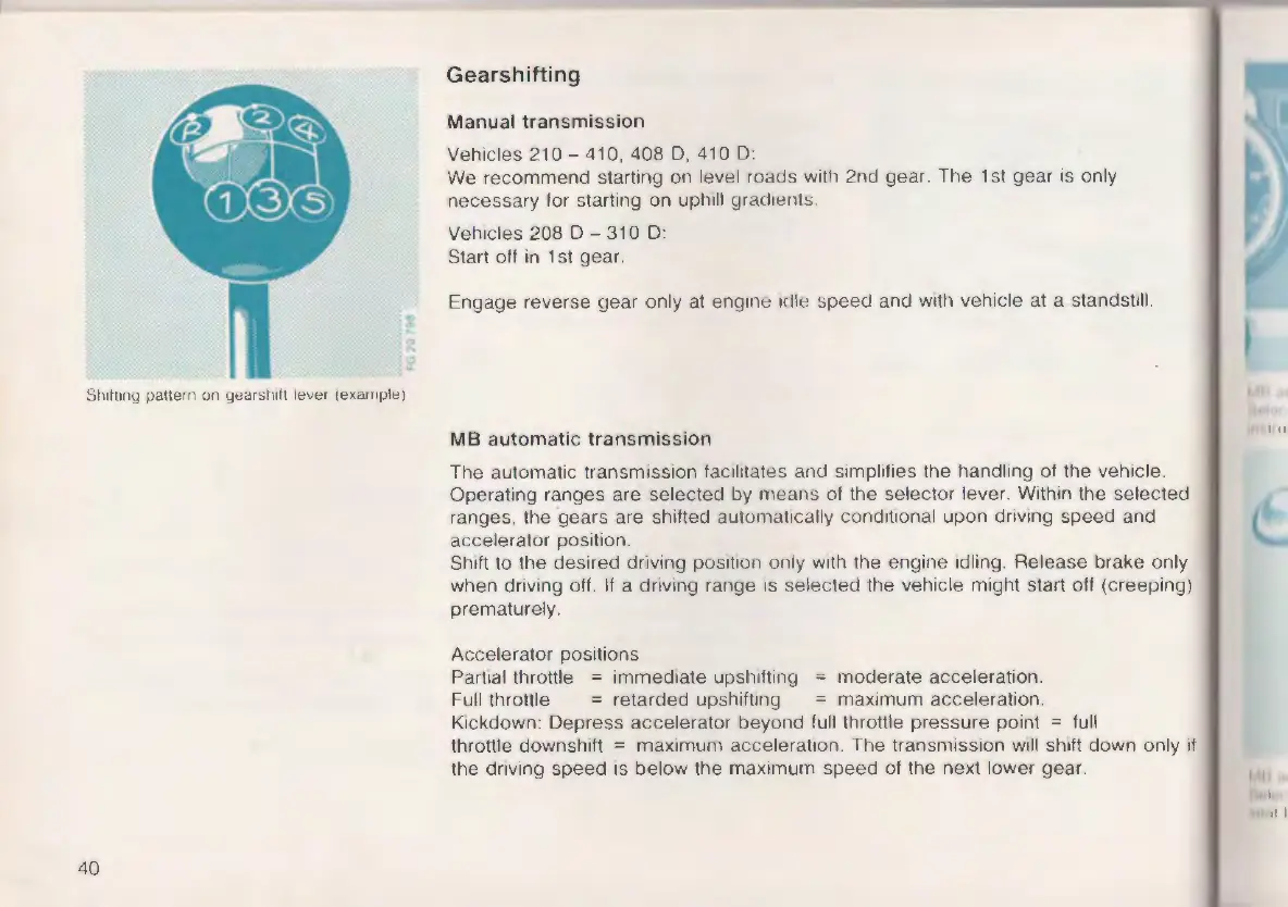 Operat ing ranges are selected by means of the selector lever. Within the selected