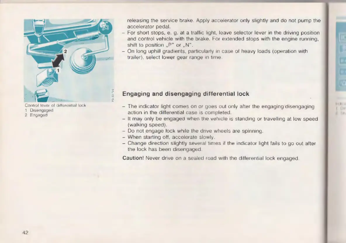 Caution! Never dnve on a sealed road with the different ial lock engaged.