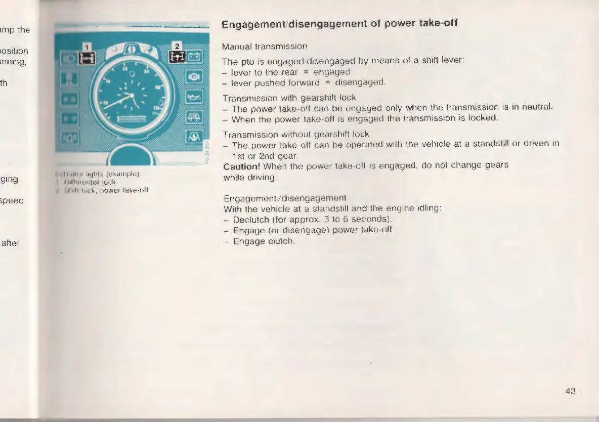 Caution! When the power take-o ff 1s engaged, do not change gea rs