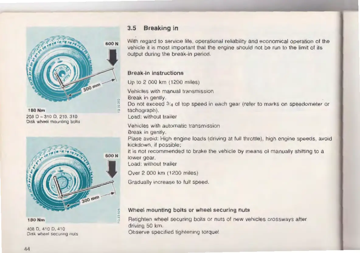 Ret1ghten wheel securing bolts or nuts of new vehicles crossways after