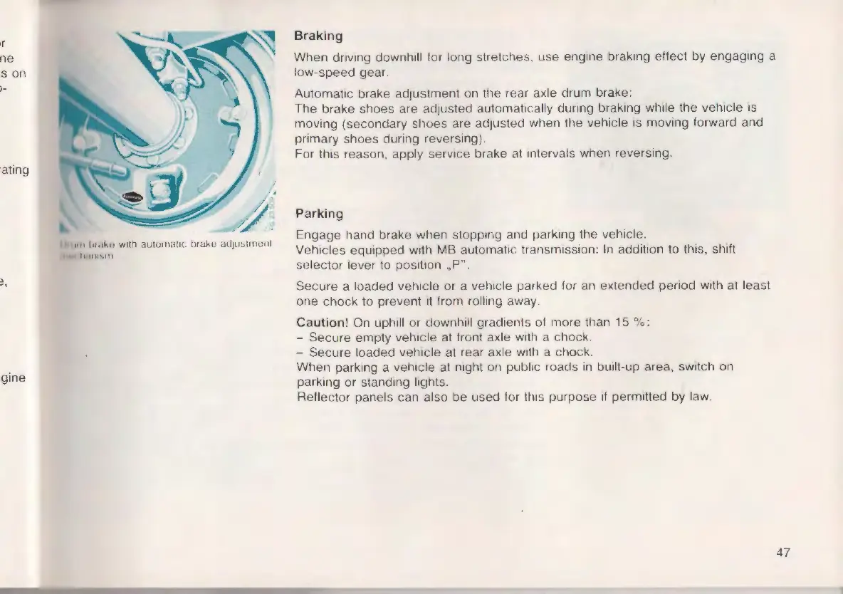The brake shoes are ad1usted automat ically dunng braking while the vehicle 1s